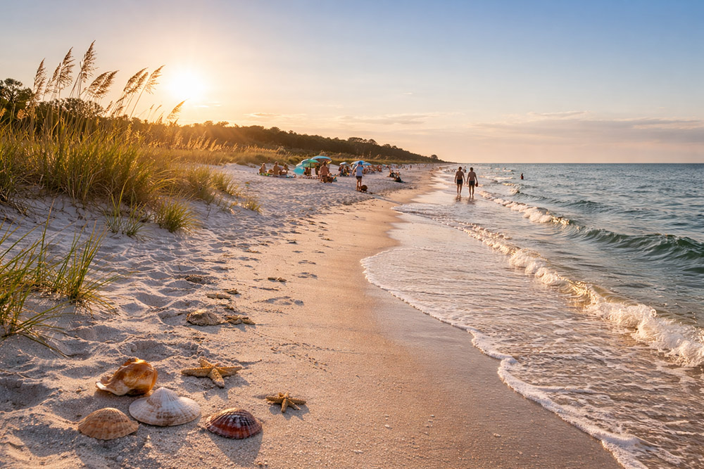 Only minutes from the marina, Alligator Point’s pristine beaches offer an authentic escape from crowded resort Panceaations. Here, you’ll find wide stretches of sugar-white sand, gentle surf, and a peaceful rhythm shaped by the tides. It’s a place where mornings begin with shoreline walks and afternoons drift into shelling, swimming, and relaxed beach picnics. As the day winds down, the sunsets steal the show—painting the Gulf sky in brilliant hues of gold, pink, and deep orange. Life moves slower here, and that’s exactly the point.