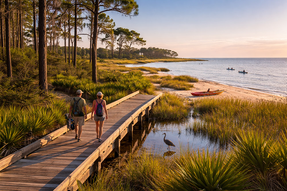 Just a short drive from Alligator Point Marina, Bald Point State Park showcases the raw beauty of Florida’s Forgotten Coast. Miles of scenic trails wind through pine flatwoods, coastal marshes, and beachfront dunes, offering opportunities for hiking, biking, and birdwatching year-round. Wildlife is abundant, from migratory shorebirds to deer and native coastal species. Launch a kayak into Apalachee Bay, cast a line from the shore, or simply take in panoramic views where land meets water. For boaters and outdoor enthusiasts alike, Bald Point is a reminder that some of Florida’s most breathtaking experiences are still beautifully untouched.